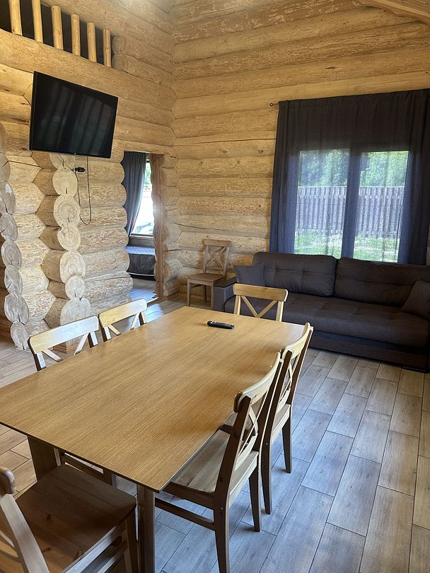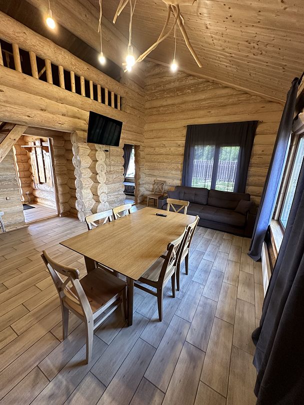 Дом оборудован всей необходимой мебелью и бытовой техникой (два телевизора, чайники, два холодильника, микроволновая печь, духовка, индукционная плита, посудомоечная машина). Посуда на 10 персон.