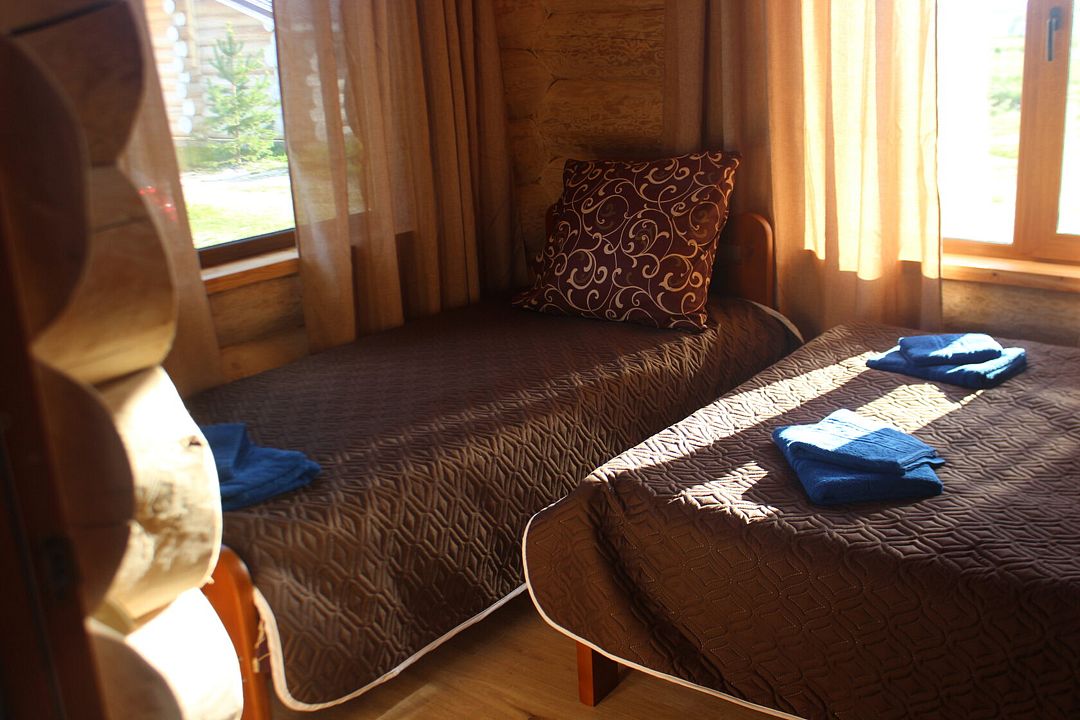 Новый бревенчатый дом на первой линии Челмужской губы Онежского озера. Рассчитан для компании 10 человек. Возможна аренда половины дома (вместимость 5 человек в половине дома).