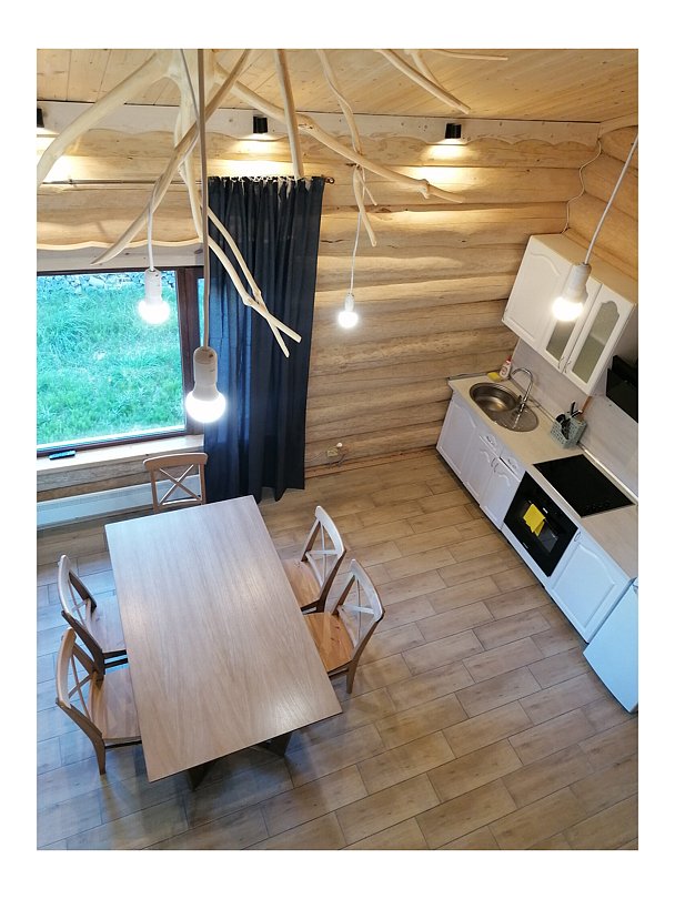 База отдыха занимает небольшую территорию среди живописной карельской природы. Гостям предлагается размещение в срубах с открытыми террасами категории дуплекс и шале, каждый из срубов рассчитан на 5 или 6 гостей. Дома выстроены из экологически чистых материалов, а внутри есть все необходимое для отдыха — мини-кухня, отдельный санузел, бытовая техника.