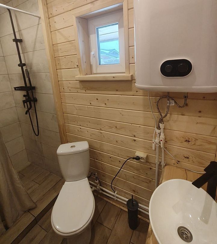 - туалет совмещен с душевой, электрический титан на 100 литров, стиральная машина;