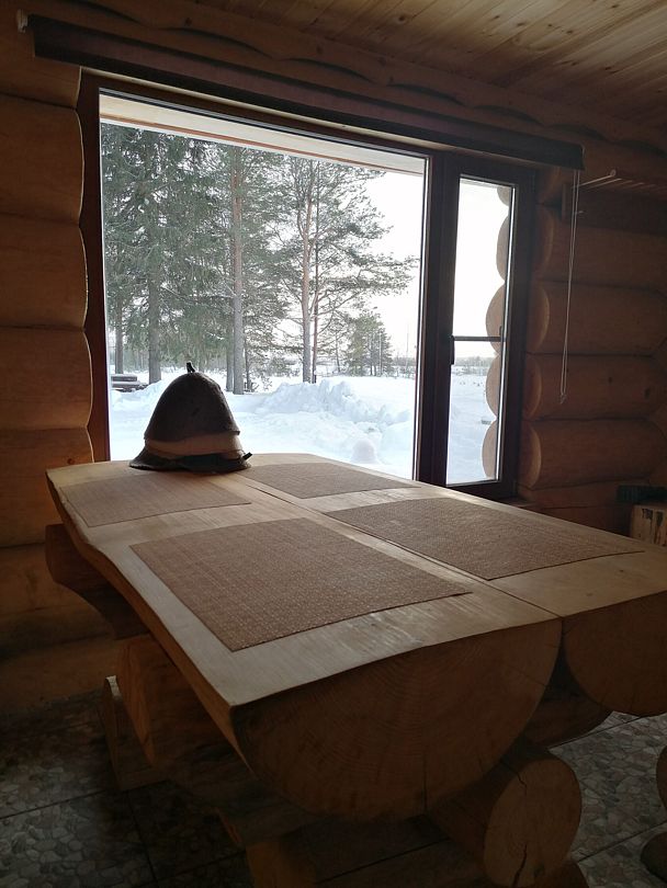 - возвращаемся в теплый гостевой дом, жаркая банька и «купание» в снегу;