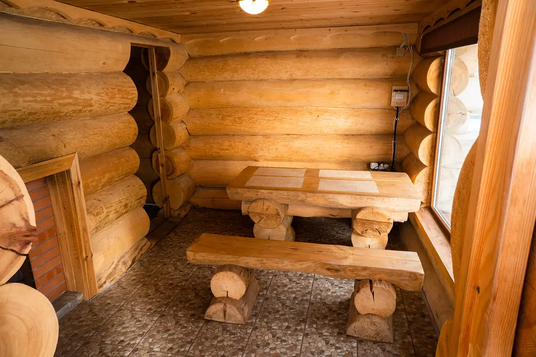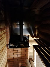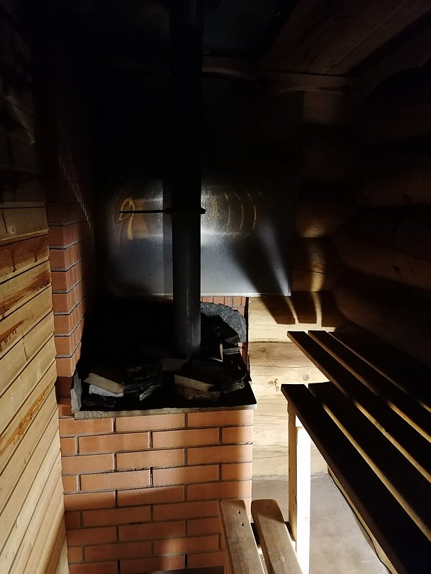 Инфраструктура: зона отдыха, шапочкиНастоящая русская баня на дровах. С вениками и парной, хорошей печкой и правильной конструкцией.