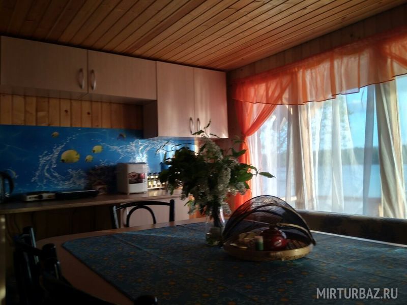 Небольшой уютный отель рассчитан на 5 отдыхающих. По договоренности можно заказать дополнительные места. На берегу водоема обустроена баня. Можно арендовать катер, лодку или велосипед. База предоставляет услугу трансфера. Регулярно организовываются экскурсии в Медвежьегорск и Заонежье.