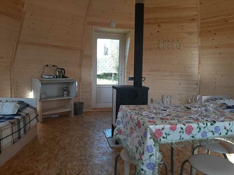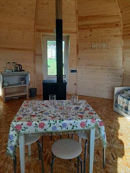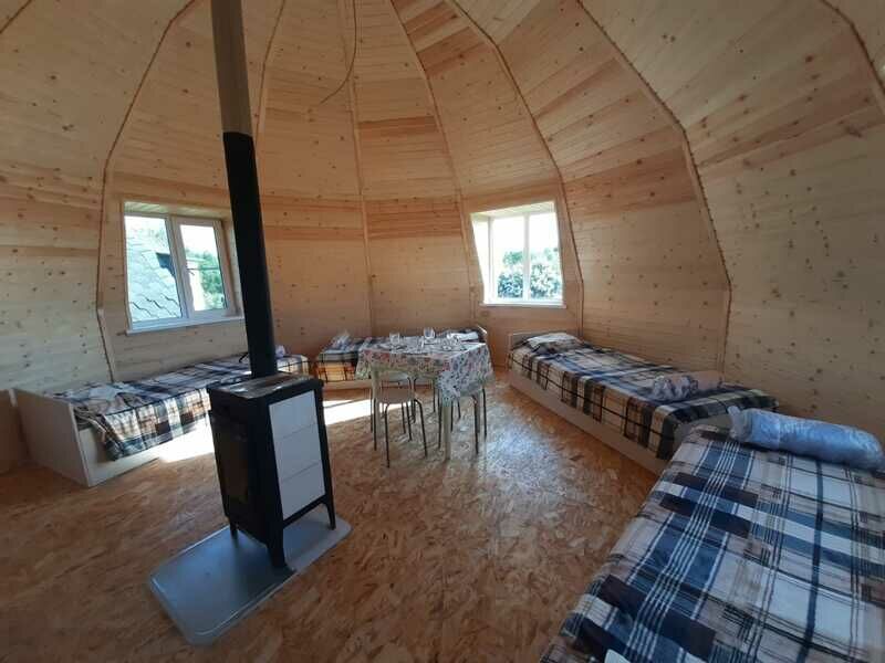 Домик Щучий, как и остальные дома имеет форму купола. Вас порадует необычность строения, внутренний простор, ощущения себя в нём и звуковые эффекты внутри дома. В нём вы сможете приятно провести время в компании единомышленников!