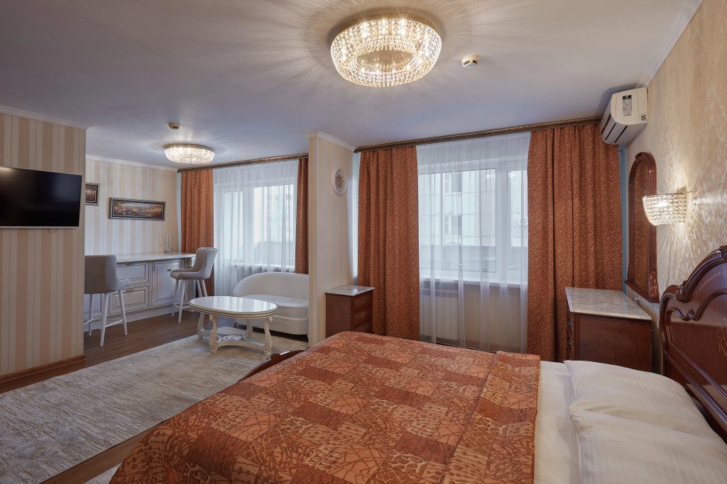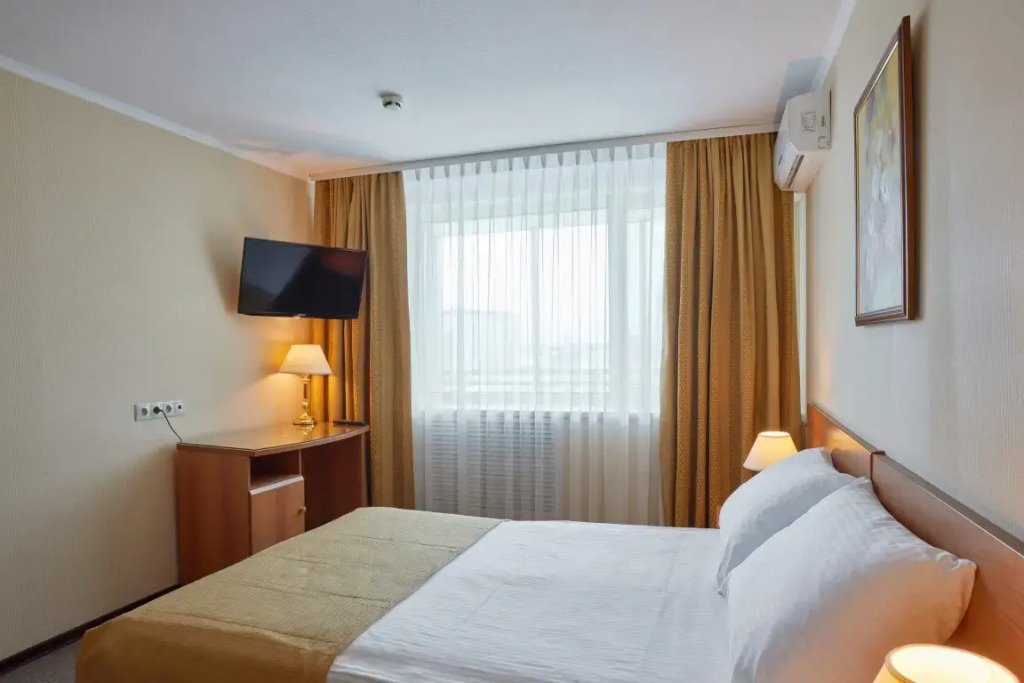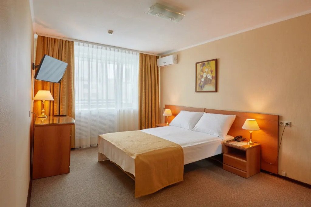 Номер уютно обставлен и оснащён необходимым, чтобы отдохнуть после долгого и насыщенного дня. Имеются телевизор. Перечисленные услуги есть не во всех номерах.
