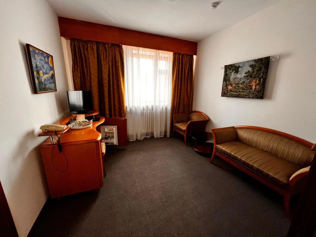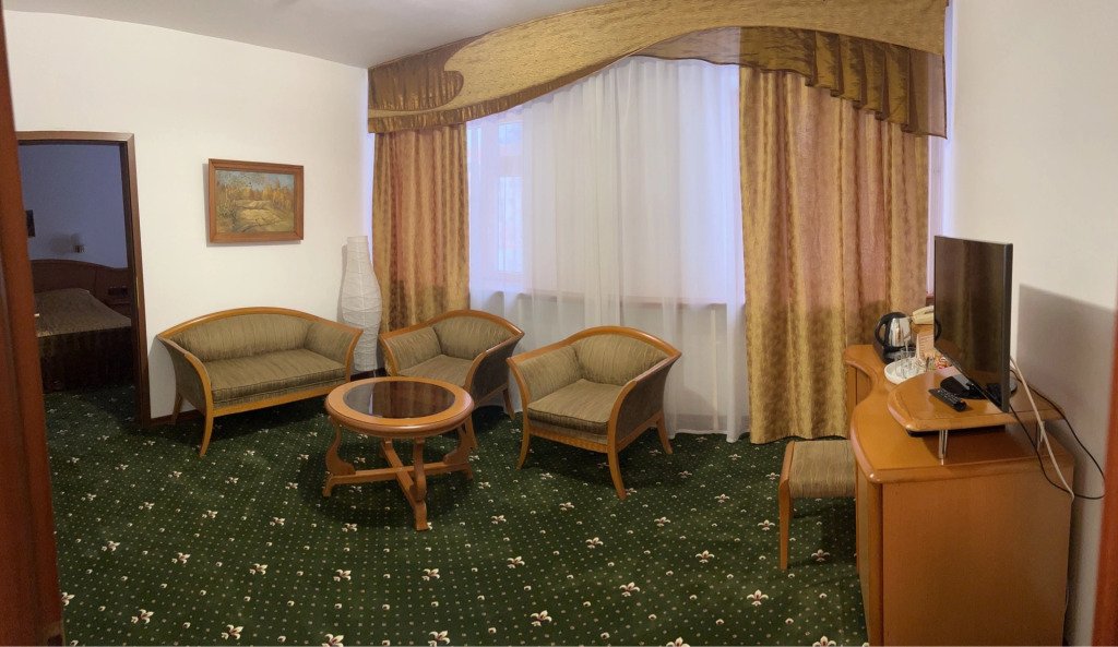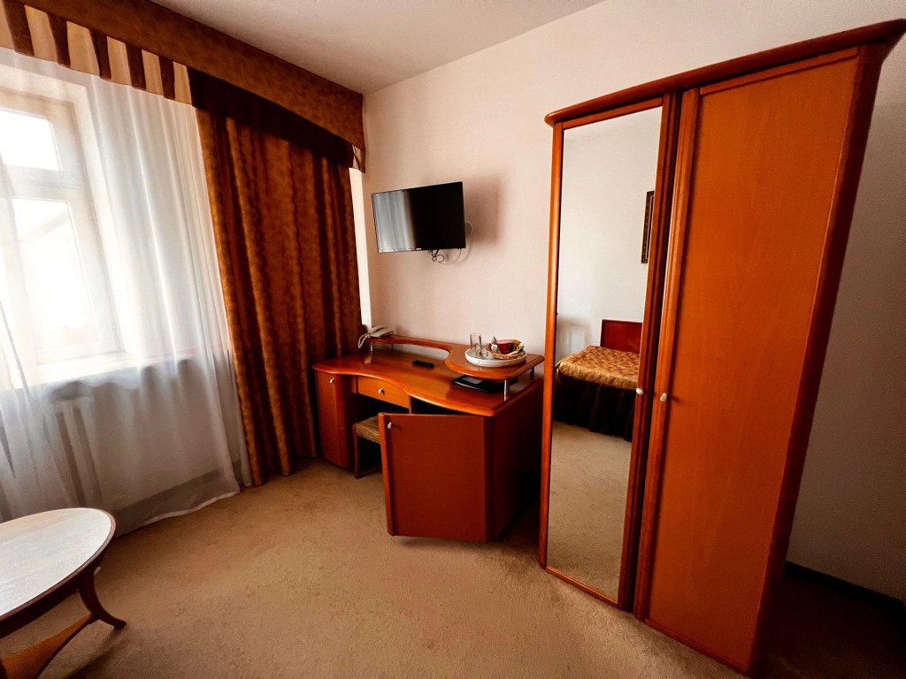 Номер уютно обставлен и оснащён необходимым, чтобы отдохнуть после долгого и насыщенного дня. Имеются телевизор. Перечисленные услуги есть не во всех номерах.