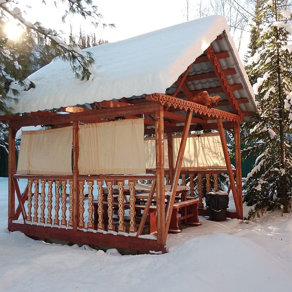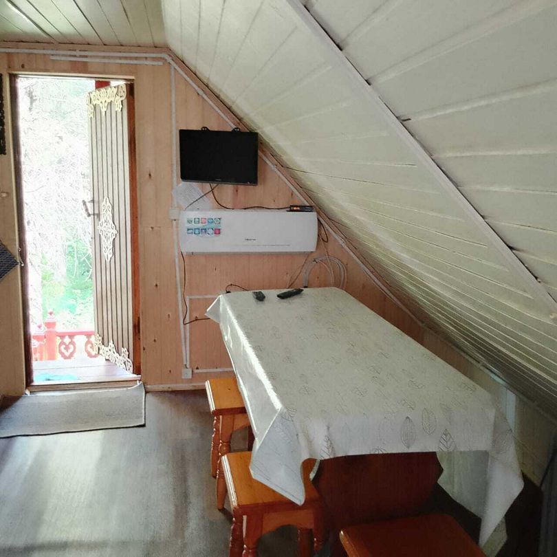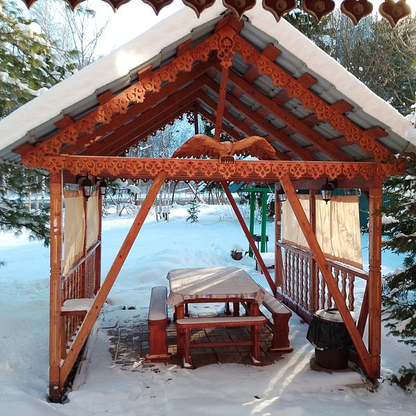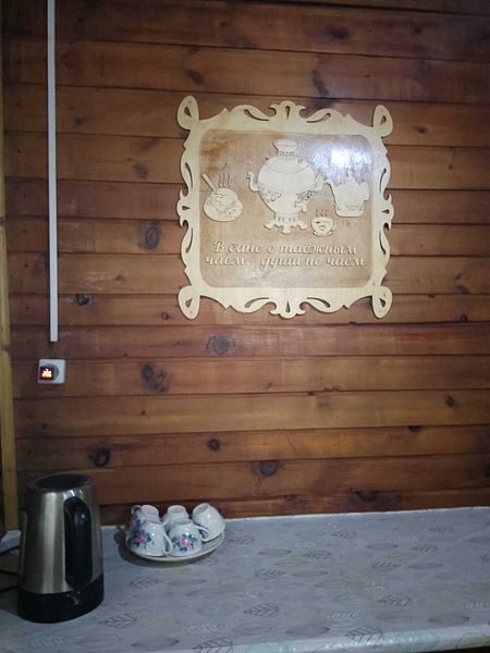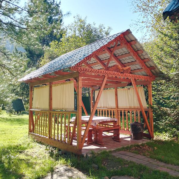 Телевизор, холодильник, умывальник, миникотел, постельное белье (по заказу), мангал, резная беседка ручной работы.