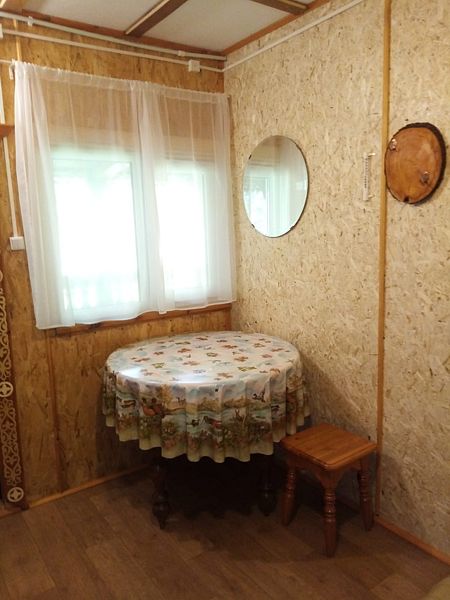 Телевизор, холодильник, умывальник, вода в доме, миникотел, постельное белье (по заказу), мангал, резная беседка ручной работы.