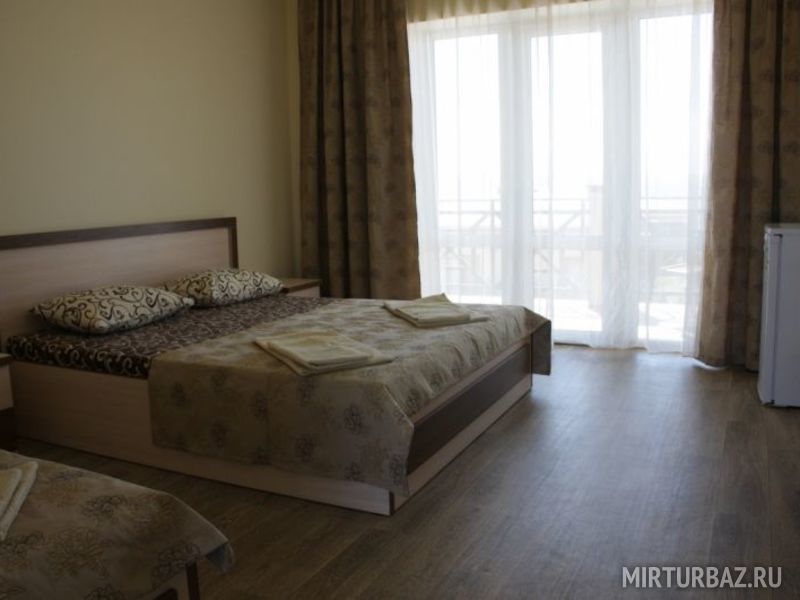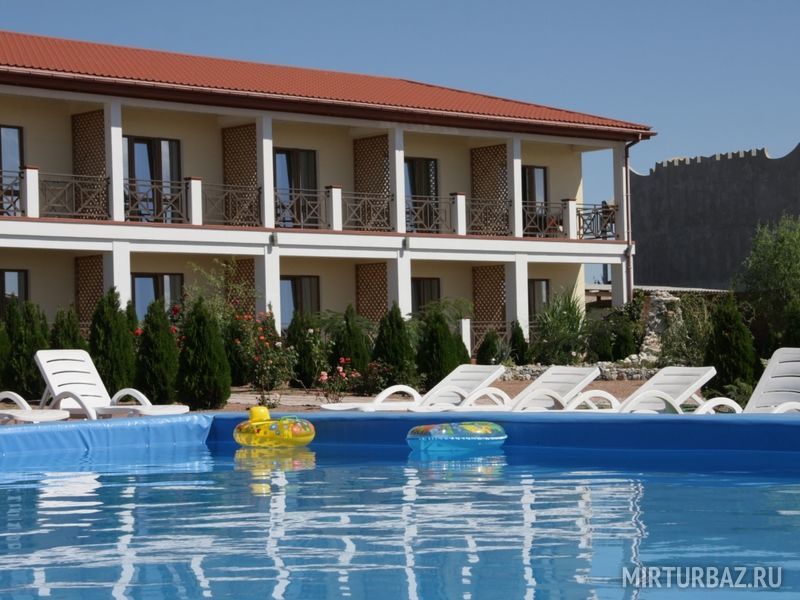Если Вы хотите провести этот отпуск увлекательно и без всяких проблем, то для Вас есть прекрасный вариант - гостиный двор "Амидея". Гостевой дом расположен в поселке Межводное, на Западном побережье полуострова. Как и повсюду в этом регионе, здесь песчаные пляжи, теплое море, свежий воздух, мягкий климат и завораживающие степные виды. Главным отличием является его уникальное расположение - он окружен водой со всех сторон - заливом и двумя озерами с целебными грязями. У туристов есть большой выбор мест для купания - это и широкие оборудованные пляжи с пологим дном и плавным входом в воду, и скалистые берега, и озера. Для любого возраста можно найти свои развлечении, ведь здесь есть собственный парк с большим количеством аттракционов, водные горки, катамараны, катера, бананы. Для взрослых - кафе, бары и рестораны.