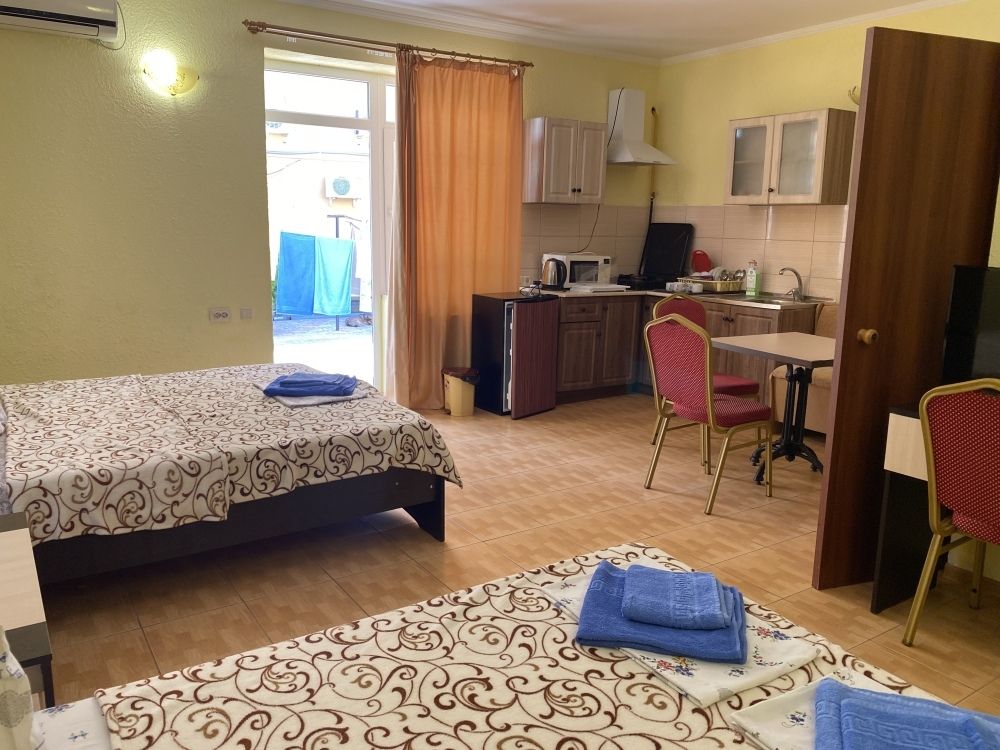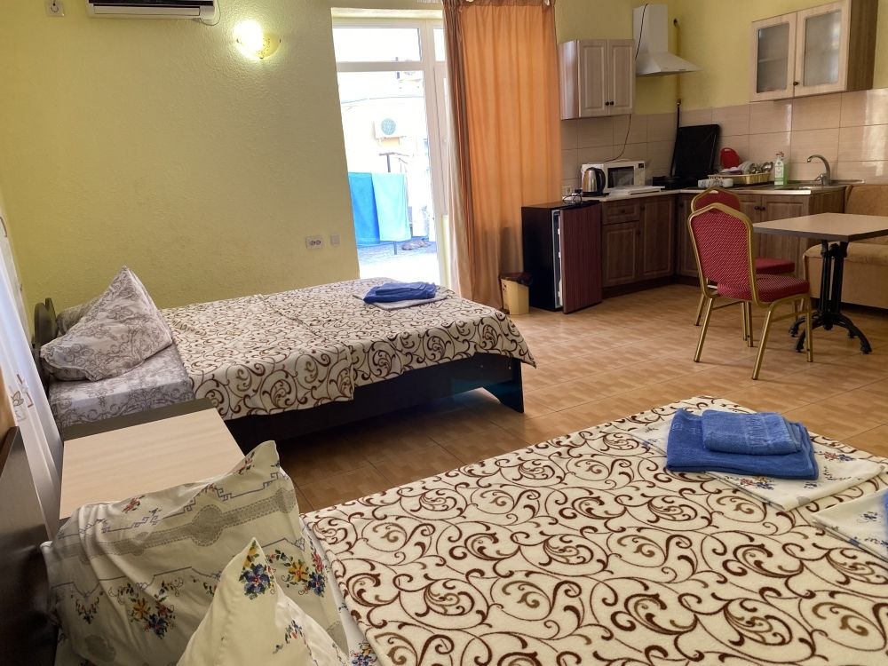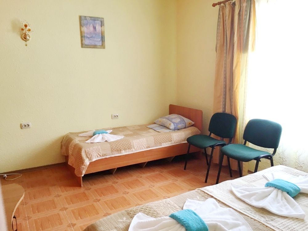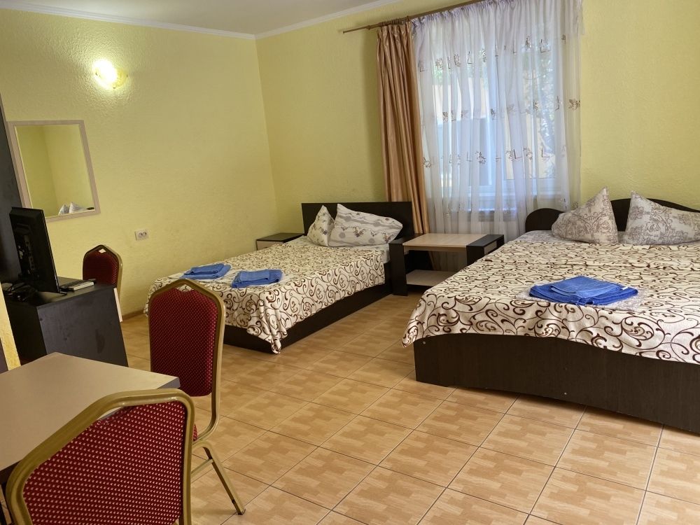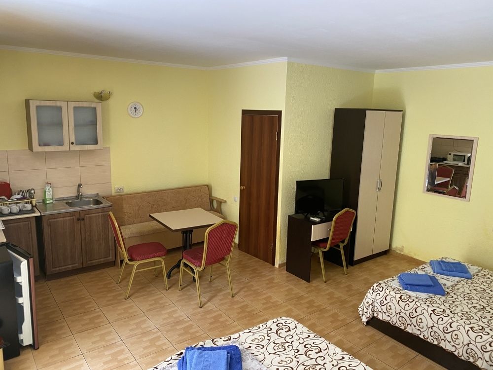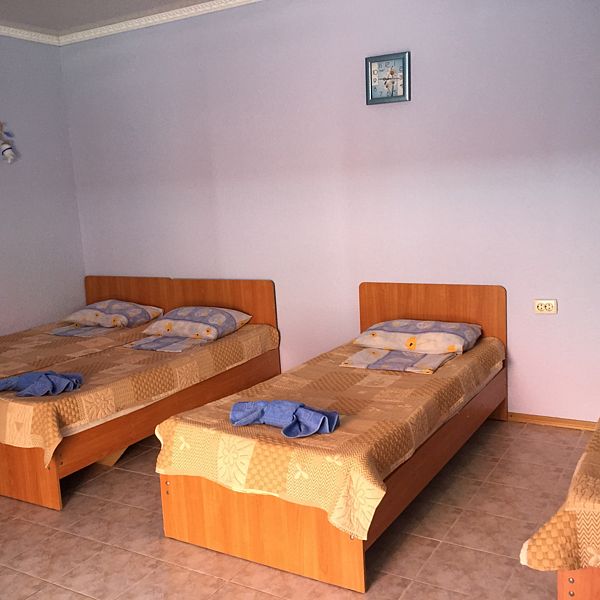 авг. 2020 г.Волшебное место!Мы только вернулись из Межводного и останавливались в Мари-Анне. Это чудесное место! Нас встретили очень душевно. Номера не новые(у нас был шестой номер обычный маленький в корпусе со столовой), но чистые с телевизором на кучу каналов(стандартный пакет), кондиционер, маленький холодильник, душ, горячая вода всегда, и вполне удобная кровать и чистая постель, что для меня очень важно. Была еще кушетка. Столик, комод, стулья - это уже так. Сантехника не новая, но все работало на 5+. полотенца меняли раз в три дня, хоть я и просила не менять, так как мы приехали всего на пять дней. Уборка также, раз в три дня. Постель меняют раз в пять дней.