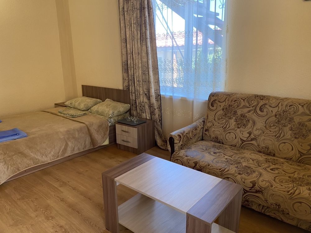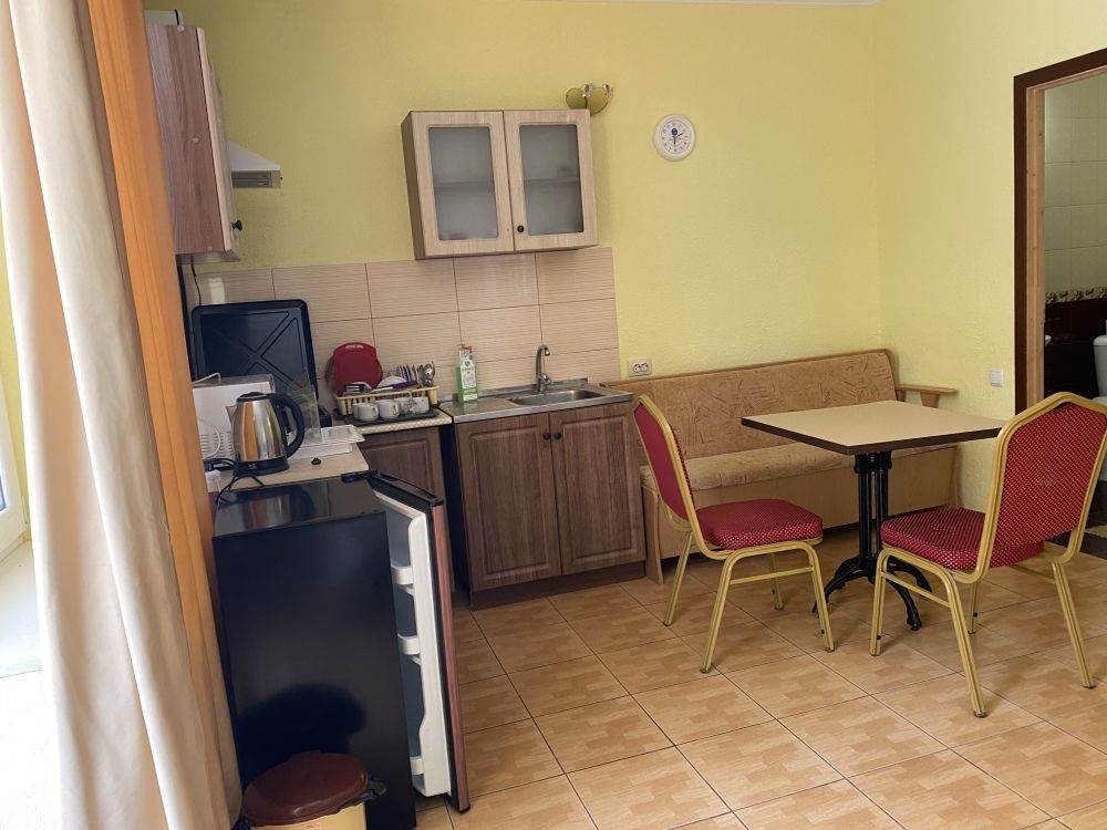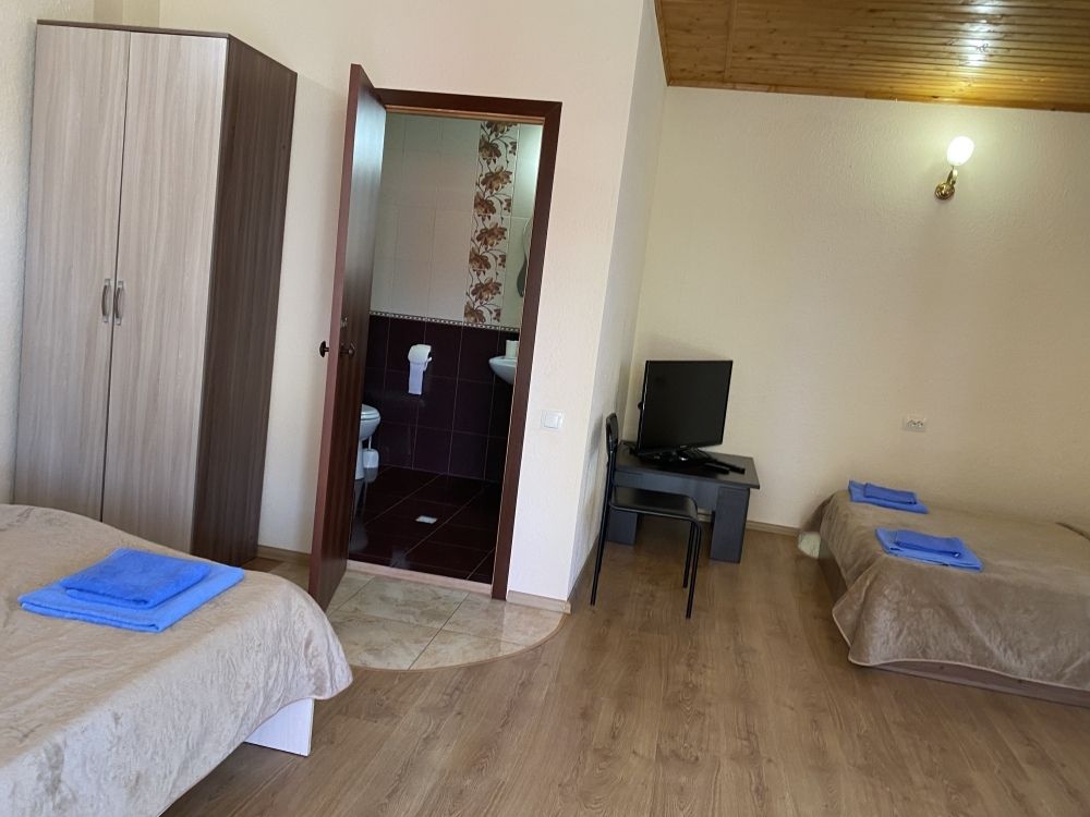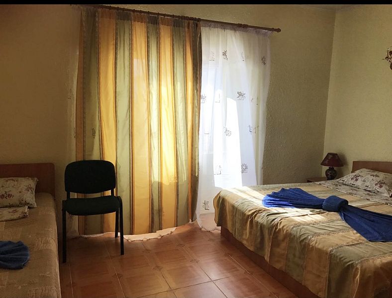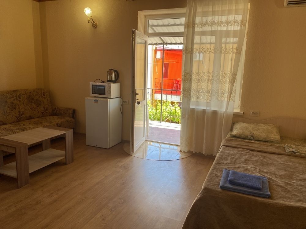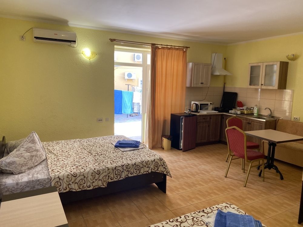 авг. 2020 г.Волшебное место!Мы только вернулись из Межводного и останавливались в Мари-Анне. Это чудесное место! Нас встретили очень душевно. Номера не новые(у нас был шестой номер обычный маленький в корпусе со столовой), но чистые с телевизором на кучу каналов(стандартный пакет), кондиционер, маленький холодильник, душ, горячая вода всегда, и вполне удобная кровать и чистая постель, что для меня очень важно. Была еще кушетка. Столик, комод, стулья - это уже так. Сантехника не новая, но все работало на 5+. полотенца меняли раз в три дня, хоть я и просила не менять, так как мы приехали всего на пять дней. Уборка также, раз в три дня. Постель меняют раз в пять дней.