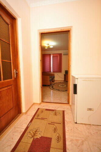 Просторный и уютный номер люкс рассчитан на проживание 2-3 человек, однако по желанию клиента в нем может быть дополнительно размещен ребенок (со спальным местом или без него). В комнате предусмотрен отдельный санузел с горячей и холодной водой (подача воды круглосуточная).