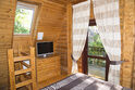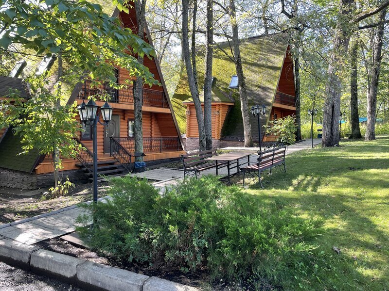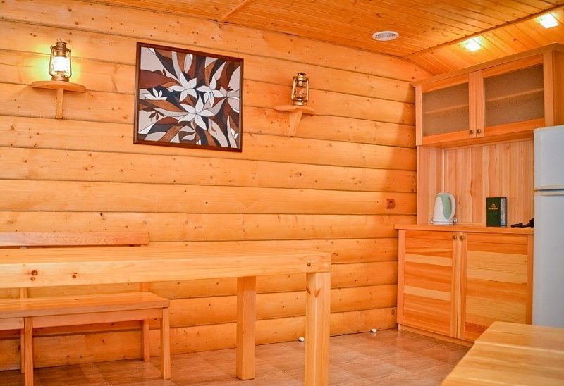 В «Лесной сказке» представлены деревянные домики различной вместимости, оборудованные всем необходимым для комфортного проживания. Каждый домик имеет свою собственную ванную комнату с душевой кабиной, феном и косметическими принадлежностями.