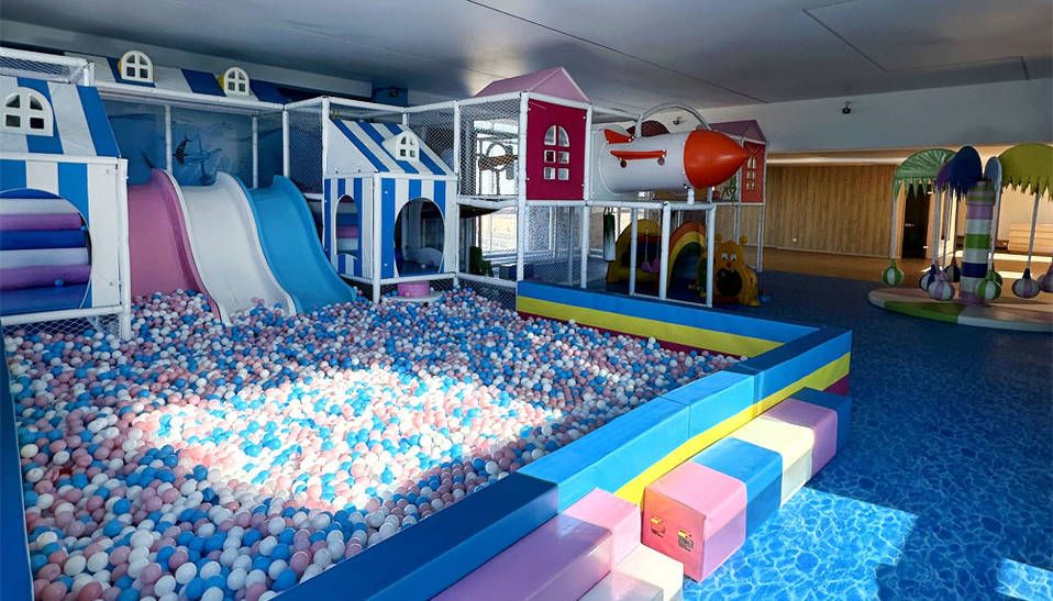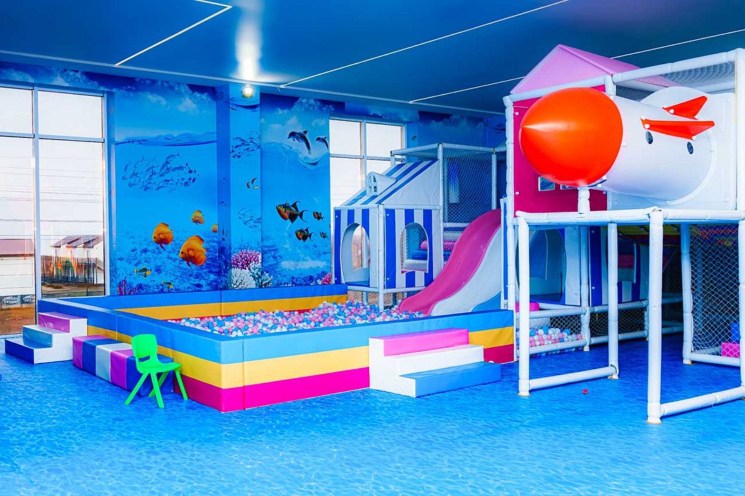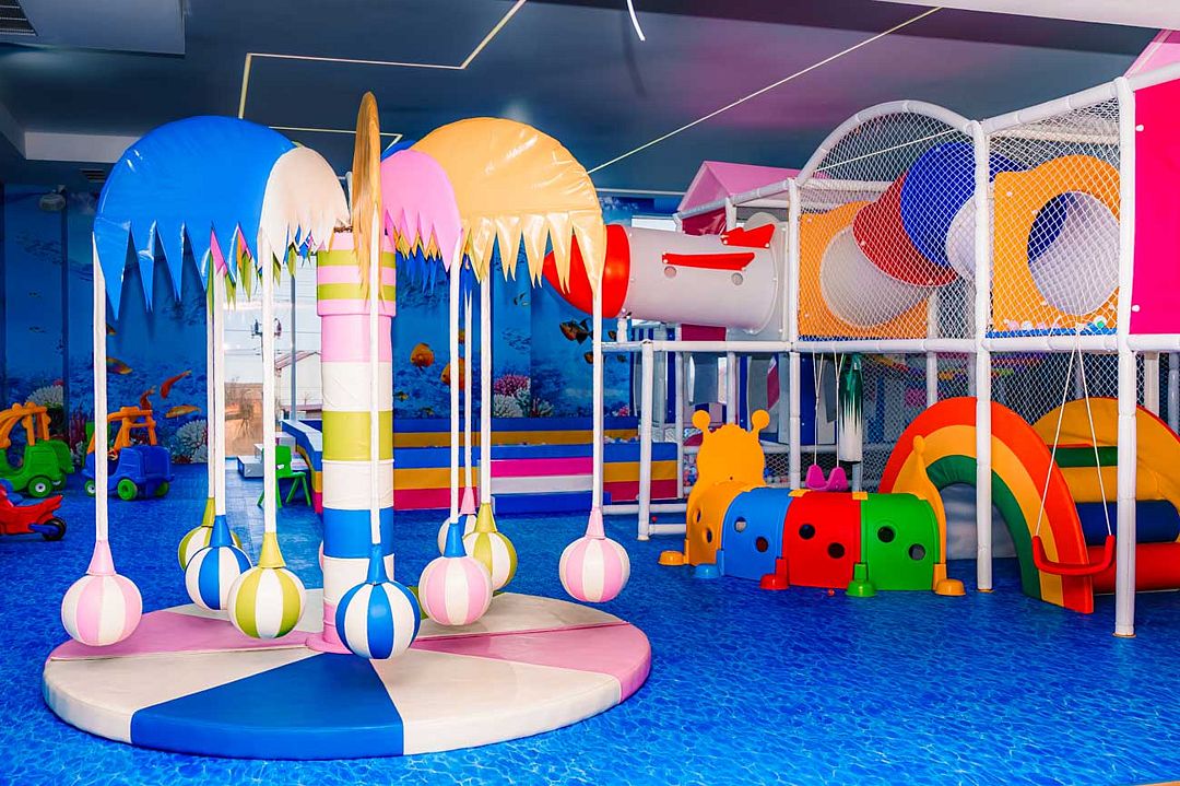 Также на территории отеля есть детский аквапарк с бассейном. Для маленьких гостей обустроена большая игровая площадка с горками, лабиринтами, качелями, лестницами и батутом. Организована анимация.