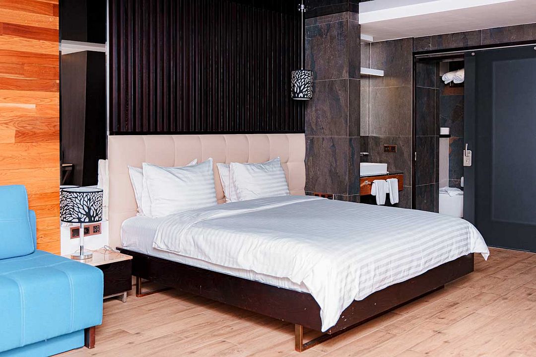 В отеле несколько корпусов с номерами разных категорий. Есть собственный пляж, оборудованный зонтиками и шезлонгами для комфортного отдыха.