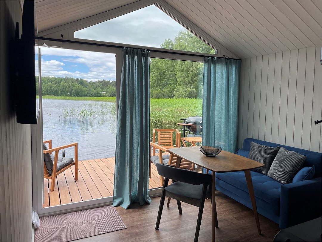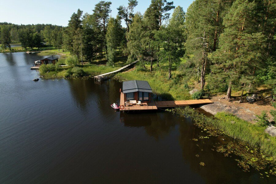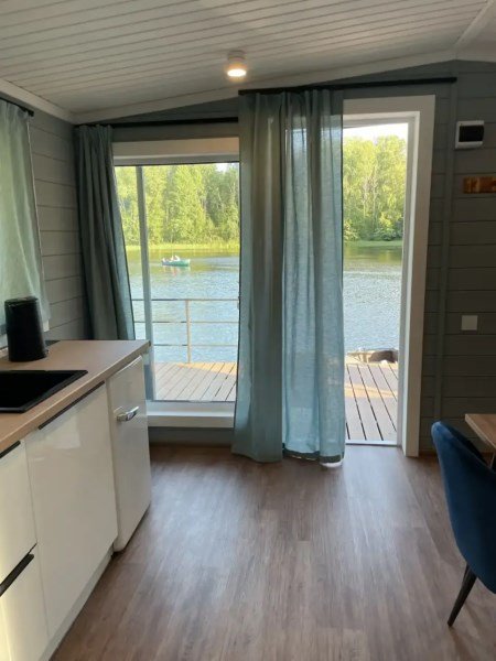 Wi-Fi, фен, плита для приготовления пищи, микроволновая печь, душевая кабина, санузел, водонагреватель, тапочки, терраса, кровать «King size», шкаф для одежды, вешалки, обеденный стол, зеркало, мебельный гарнитур, камин, набор посуды, чайник, унитаз, раковина, кухонная посуда, столовые приборы, стул, туалетные средства, туалет, мангал, панорамные окна, мини-холодильник, мини-кухня, кухонный уголок, вид на озеро, телевизор со Smart TV, usb порт, вид на лес, система умный дом, набор для приготовления чая и кофе, уличный стол и стулья из тикового дерева, мыло, окна от пола до потолка, можно с питомцамиВ доме на воде