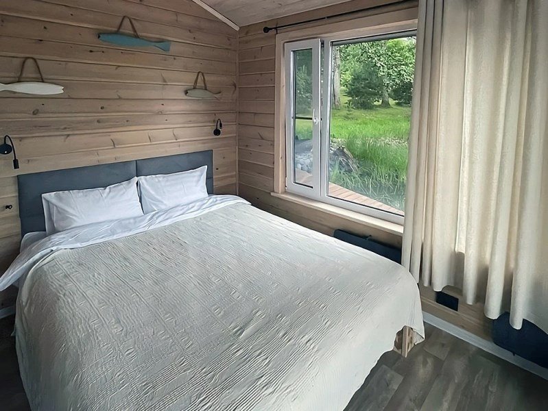 Кровать «King size», стол для переговоров, мангал, вид на озеро, можно с питомцами, уличная мебель.