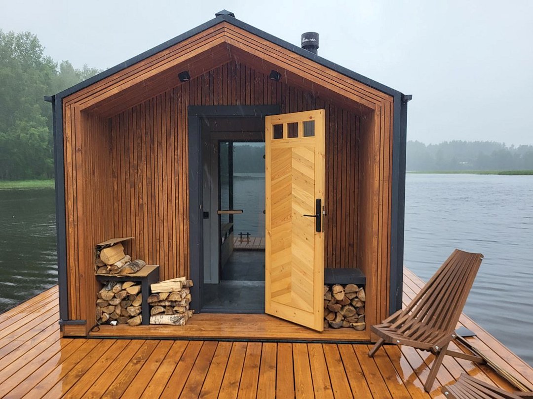 Инфраструктура: обливное ведроРасположение: выход к рекеМинимальное время аренды: 2 часаПлавучая баня — это уникальная возможность по карельским водам. Баня на понтонах - образец классической русской бани в сочетании с современными комфортными условиями. Прекрасная парная, душевая кабина, зона отдыха для компании. Вы сможете с наслаждением окунуться в воды сразу после посещения парной с двумя видами пара. На открытой площадке предоставляются удобные кресла для отдыха.