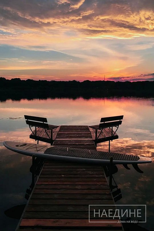 Для интересного достуга доступна баня на воде, прогулки на сап-бордах, катере, рыбалка, гриль-вечера, возможность наслаждаться закатами прямо с террасы и многое другое.