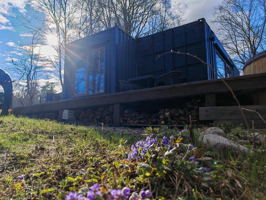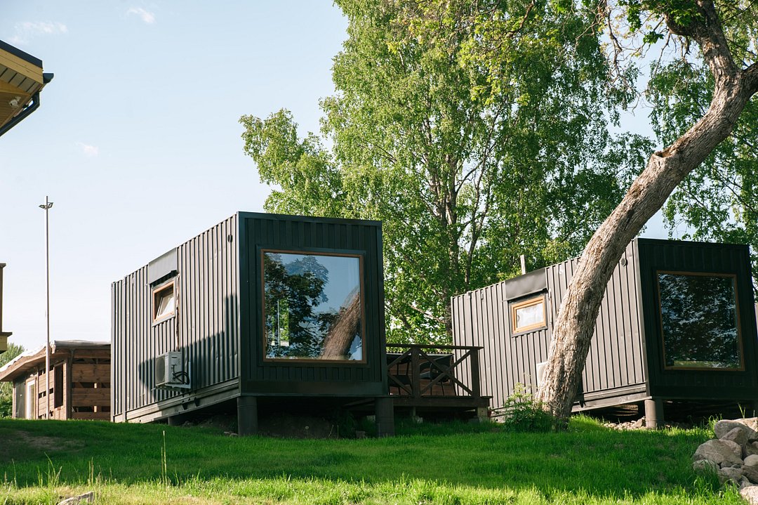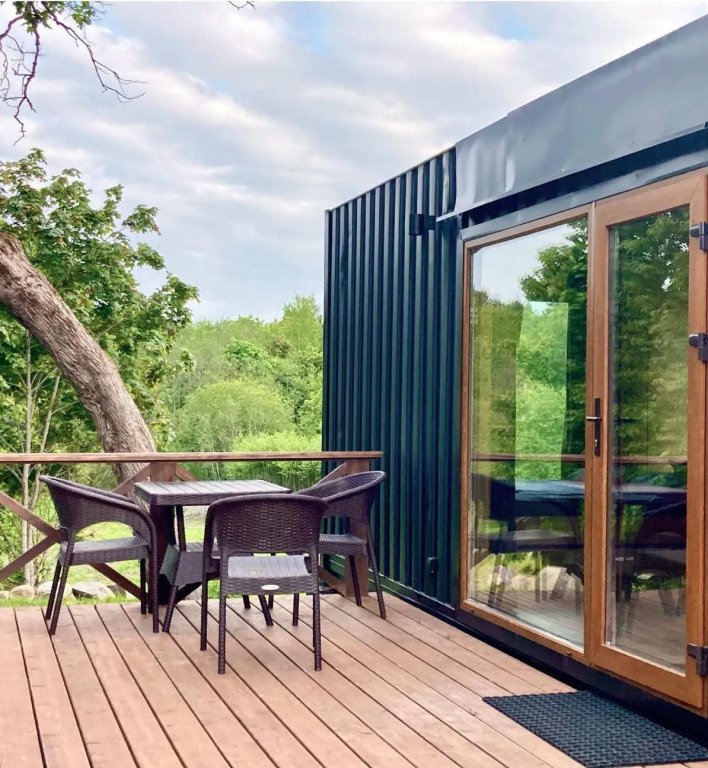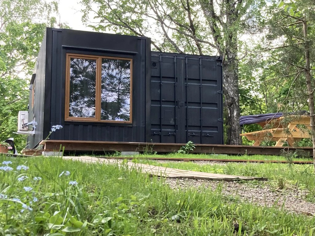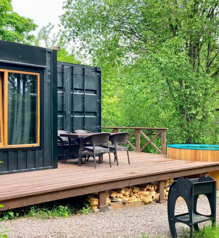 Уединенный комфортный дом-контейнер для семьи или компании до 6-ти человек с двумя спальнями, большой кухней-гостиной и теплой купелью на большой открытой террасе