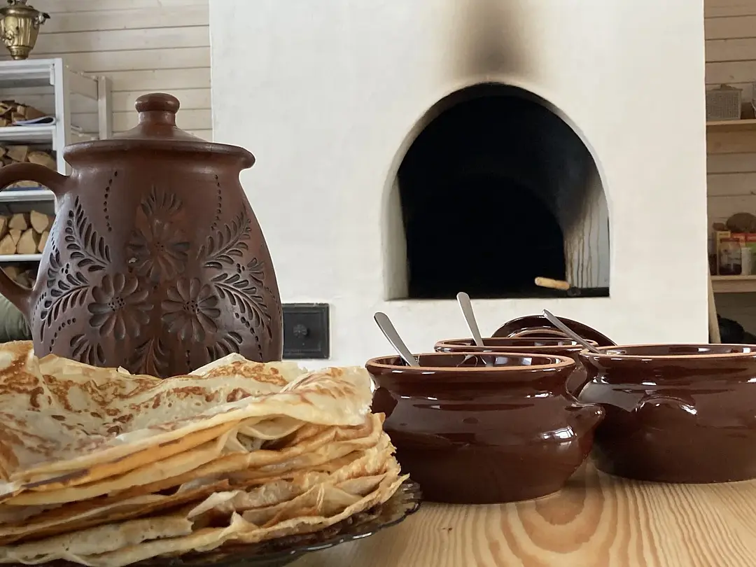 Зимой можно покататься на снежных ватрушках или поиграть в настольные игры с чашкой ароматного чая и домашними угощениями. В доме-гостиной царит атмосфера домашнего уюта: поспите на русской печи, насладитесь моментами с близкими и побалуйте себя традиционными блюдами, такими как легендарная томленая каша или щи.