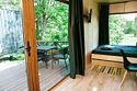 В доме с панорамными окнами объединенная кухня-гостиная с большим раскладывающимся двухместным диваном, две отдельные спальни с комфортными двуспальными кроватями, отдельная ванная комната с душем и туалетом, кухня полностью оборудована техникой и посудой, терраса с удобной мебелью и барбекю