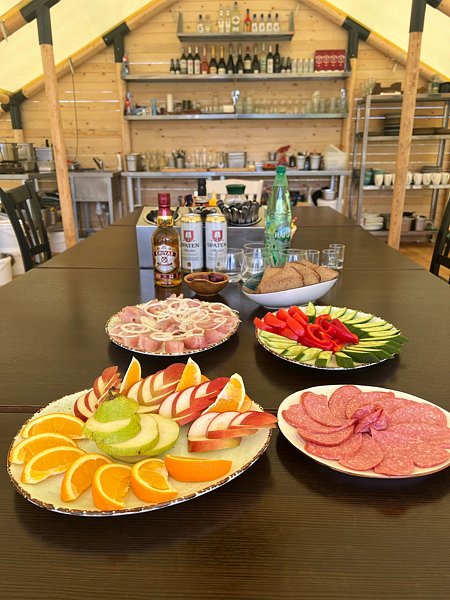 Вечером для вас разведут костер и приготовим шашлык или рыбу. Столовая превращается в бар, где можно выпить алкогольные или безалкогольные напитки.