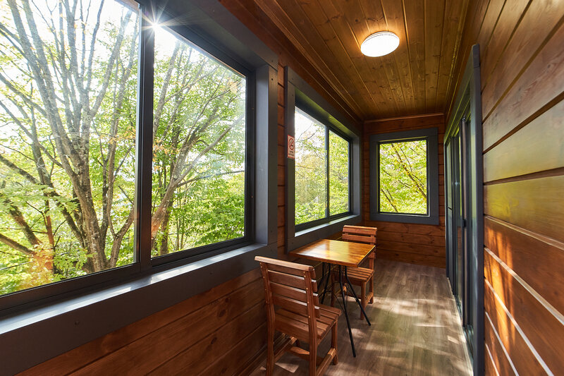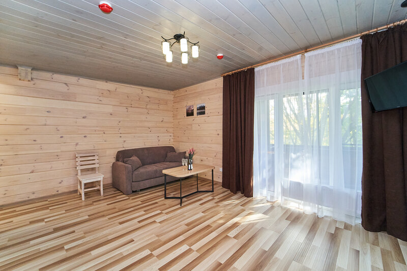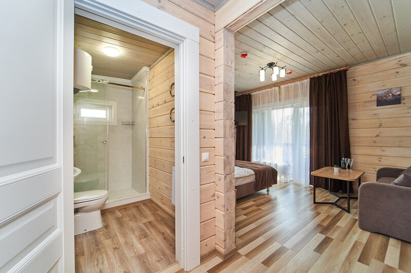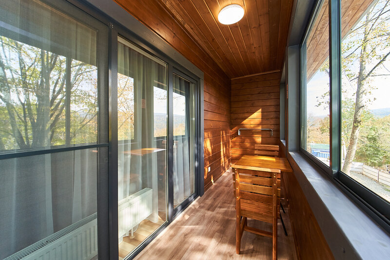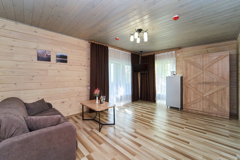 Для размещения предлагаются номера в современных домиках, которые оснащены WI-FI, холодильником, электрочайником, сейфом, полотенцами и собственной ванной комнатой. С лоджии можно будет наблюдать природные виды.