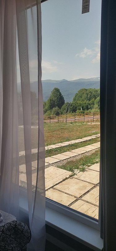 База отдыха приглашает отдохнуть на высоте около тысячи метров в окружении сказочных видов и захватывающими дух панорамами прямо из окна. Дом оборудован всем необходимым для комфортного отдыха: кровать в спальне, удобный диван с журнальным столиком в гостиной, кухонная зона с бытовой техникой (холодильник, микроволновая печь, чайник, столовые приборы).