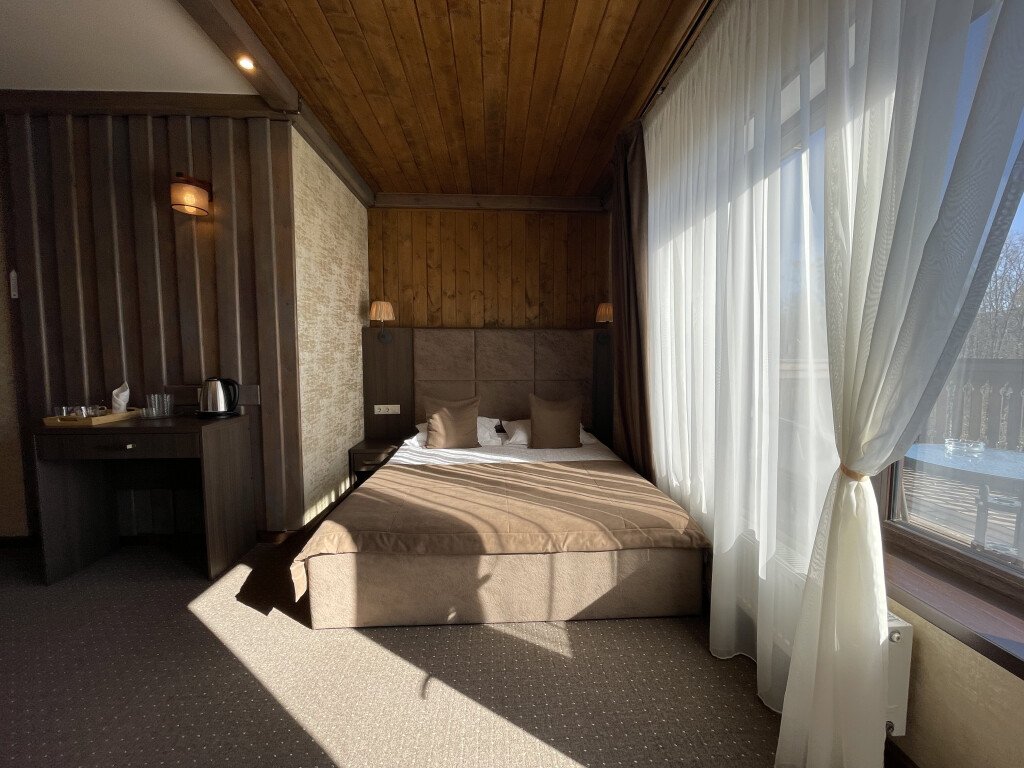 Номер уютно обставлен и оснащён необходимым, чтобы отдохнуть после долгого и насыщенного дня. Имеется телевизор. Оснащение зависит от выбранной категории номера.