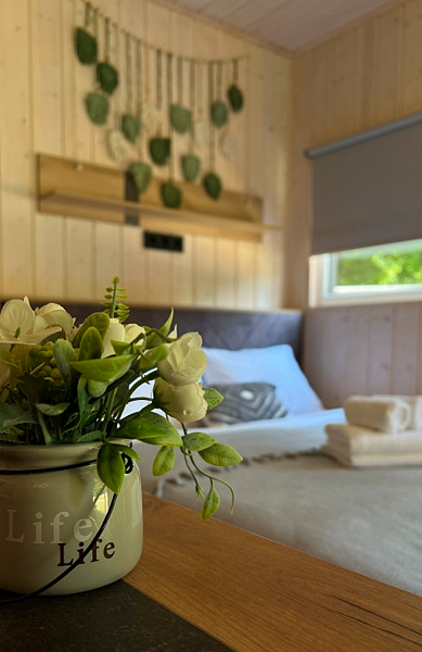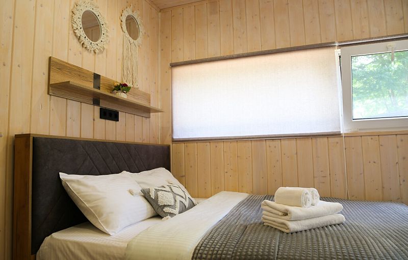 Домики-студии «Высокого берега» — это идеальное сочетание комфорта и природного очарования. В вашем распоряжении уютная спальная зона с двуспальной кроватью. Полностью оборудованная кухня со всей необходимой посудой и техникой. Бесплатный Wi-Fi для связи с близкими и публикации ваших впечатлений.