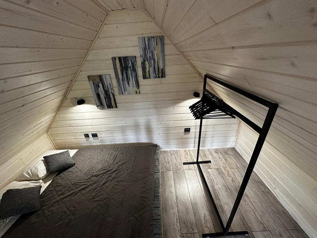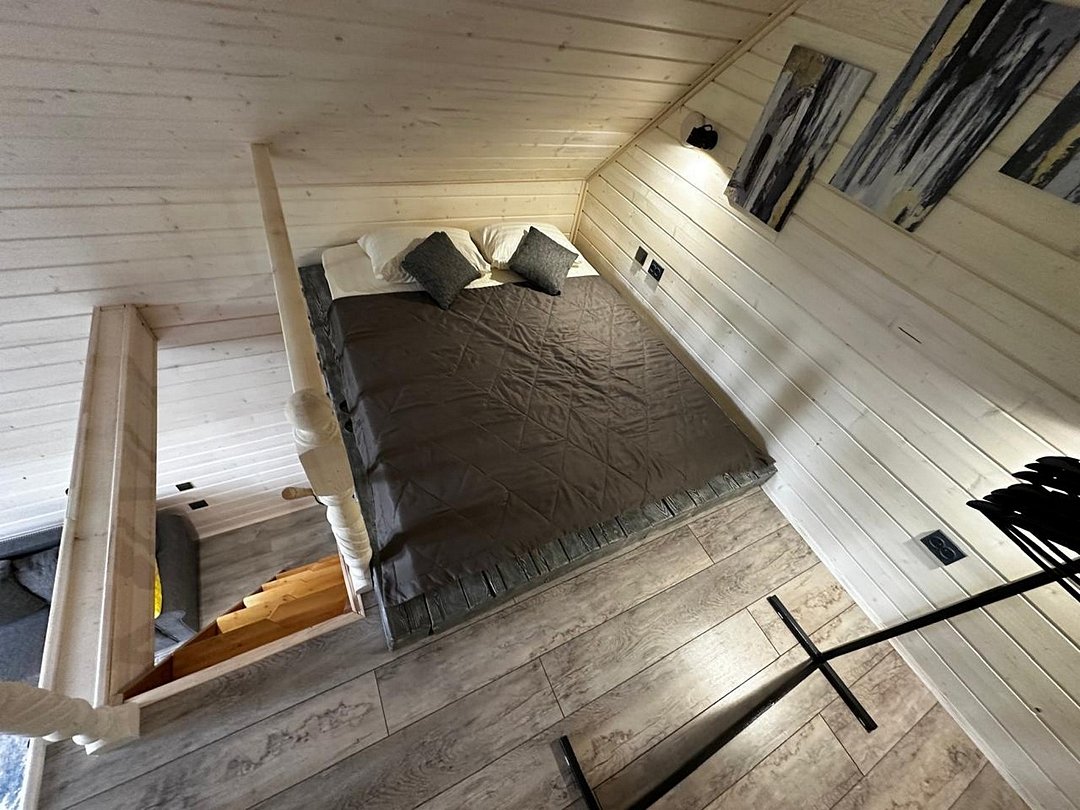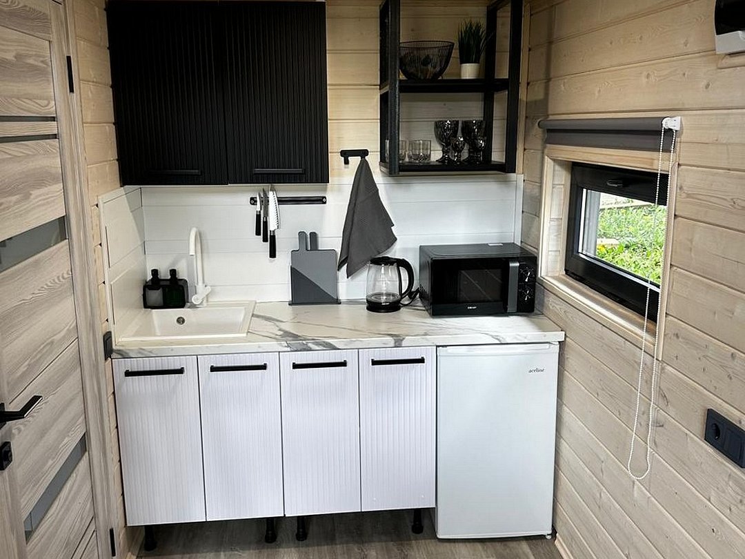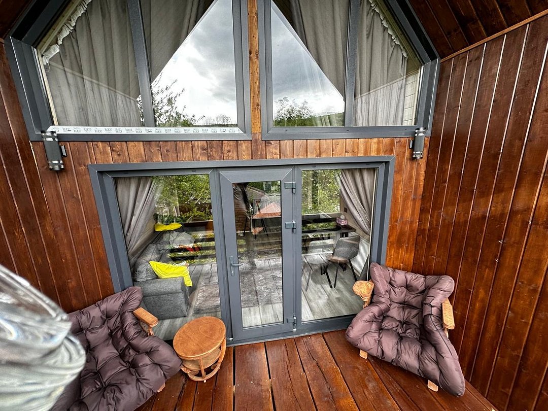 Домик четырёхместный площадью 39 кв.м с видом на горы. На террасе стол и 2 кресла. Подходит для размещения 6 человек. (4 основных места и 2 дополнительных) Имеет спальню с приятным интерьером. В номере: 1 двуспальная кровать, 1 двуспальный диван. Имеется телевизор, кондиционер, вешалка, туалетный столик, фен, мини-кухня, обеденный стол, стулья, посуда, столовые приборы, СВЧ, чайник, холодильник, отопление. Индивидуальная ванная комната: душ, раковина, туалет. В стоимость входит: постельное бельё, полотенца, мыло, тапочки, ванные принадлежности (шампунь, гель для душа, мыло) WI-Fi бесплатно на всей территории. Бесплатная частная парковка на территории.В номере