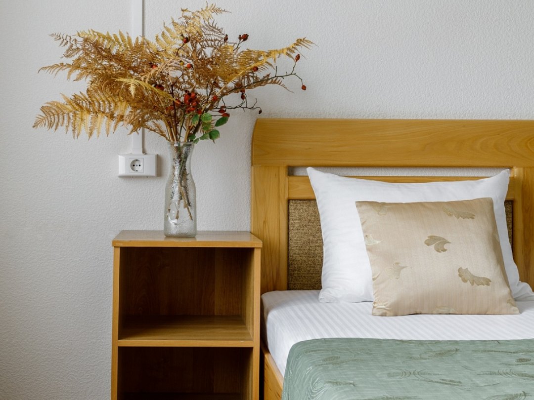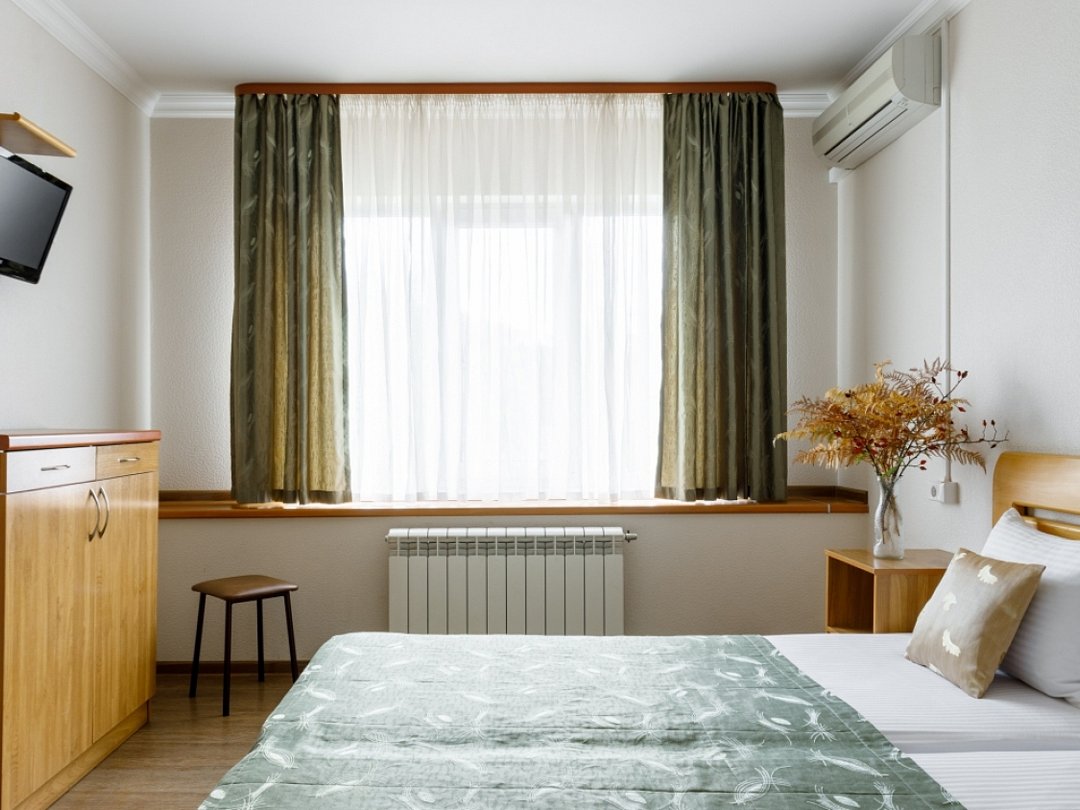 Стандартное оснащение: кабельное ТВ бесплатное пользование Wi-fi две односпальные кровати прикроватные тумбочки шкаф душ санузел фен в ванной комнате комплект из 4 полотенец холодильник кондиционер Номер можно оснастить дополнительным местом (по запросу).В номере