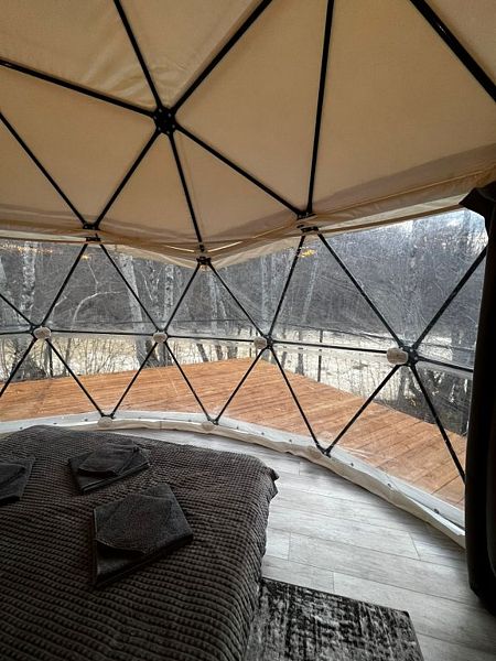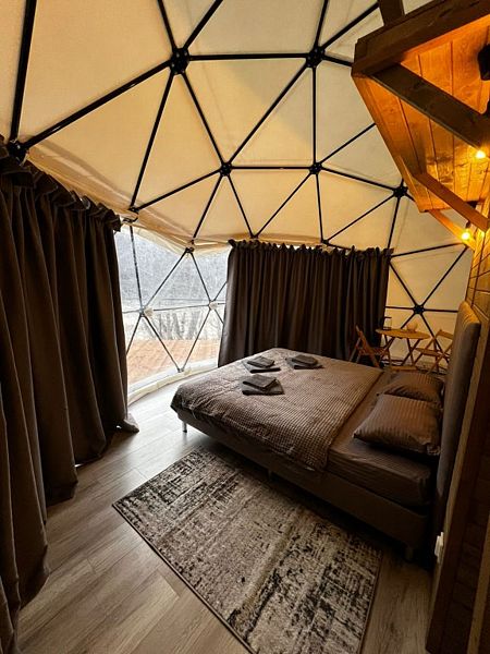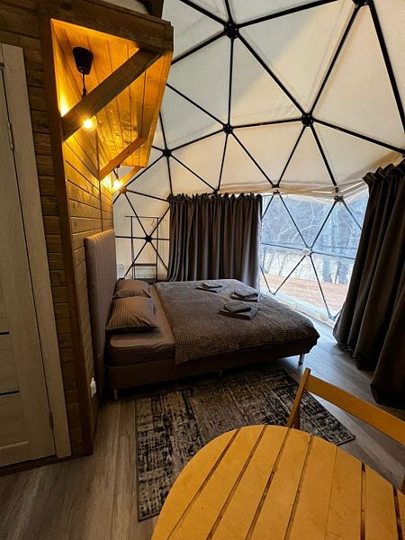 Глэмпы — это воплощение комфорта и стильного дизайна. Панорамные окна, экологичные материалы, современная отделка и удобства в каждой сфере, а также бесперебойное электричество сделают ваш отдых незабываемым. Для вашего комфорта в каждой сфере установлены сплит-системы с функцией обогрева и охлаждения, розетки, отдельный санузел с душем и качественными принадлежностями.