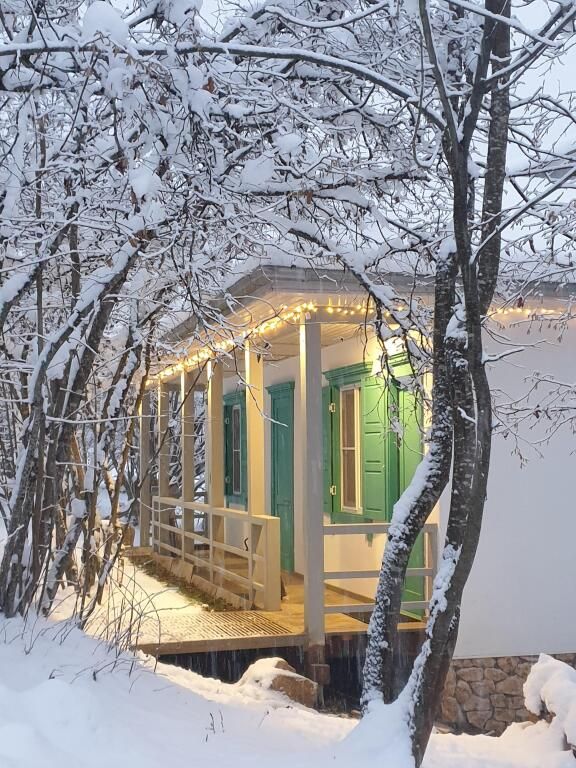 Дом с камином, кухней и верандой для проживания до 5 человек.