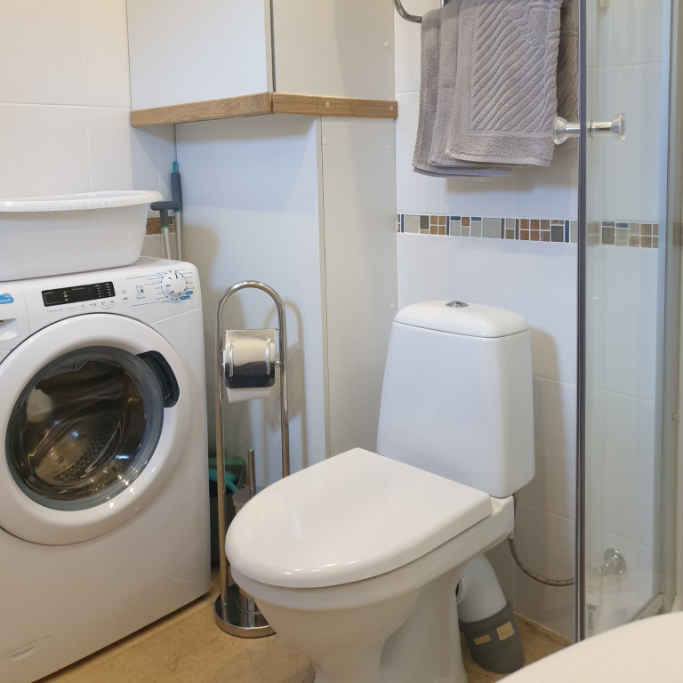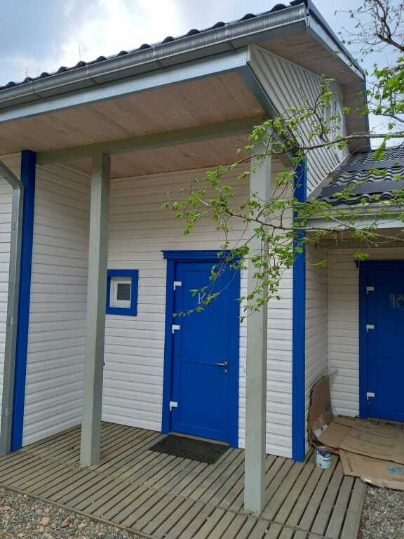 Дом со всеми удобствами для комфортного проживания: санузел с душем и стиральной машиной, кухня со всем необходимым для приготовления пищи, отопление с теплыми полам, кондиционером и камином.
