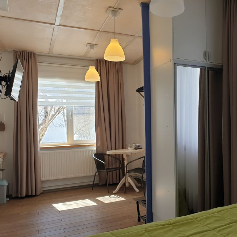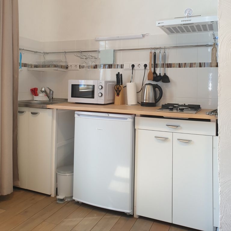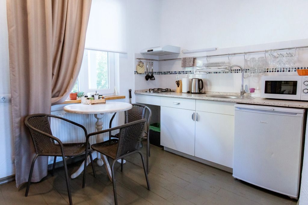 Номер для комфортного проживания для 2 человек. Есть возможность установки дополнительного спального места. Санузел с теплым полом и стиральной машиной. Оборудованная кухня со всем необходимым для приготовления пищи.