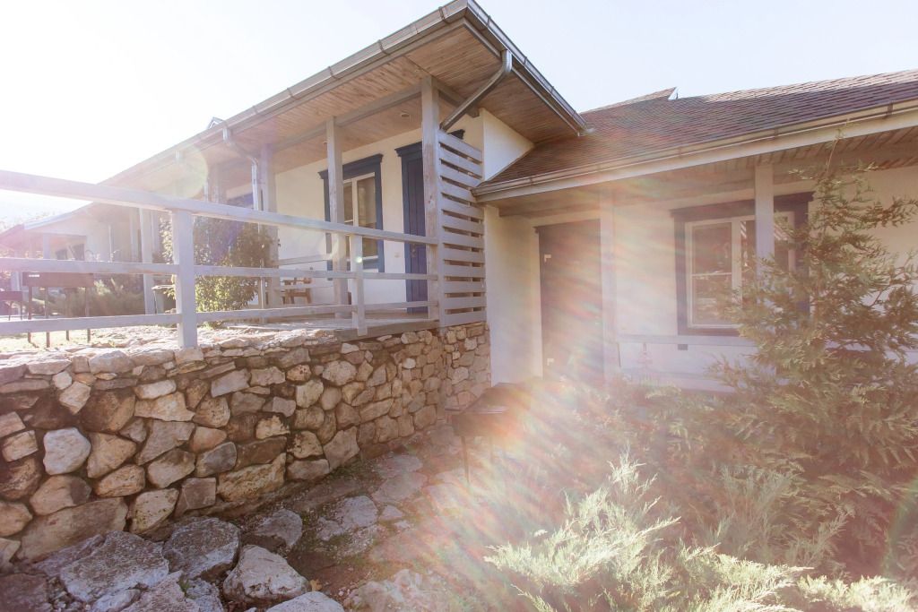 Новый, отдельно стоящий дом из блоков, утеплённый и оштукатуренный. Роскошный вид на горы. Веранда под крышей с мебелью.