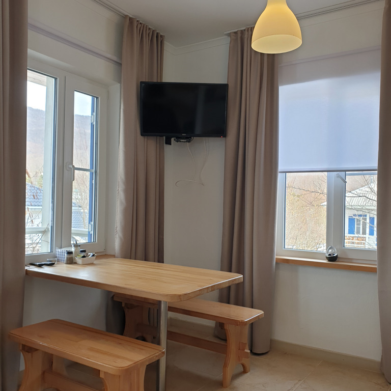 Рассчитана на четырехместное размещение, оборудована всем необходимым для проживания: мини-кухня, удобные кровати с ортопедическими матрасами, собственный санузел с душевой, красивый вид на горы.