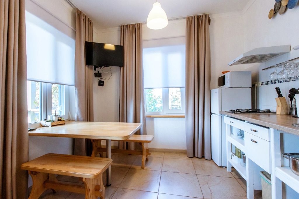 В номере есть все условия для комфортного проживания: новые матрасы, подушки, постельное белье. Всё отличного качества. Кухня со всей необходимой посудой и бытовой техникой для приготовления пищи.