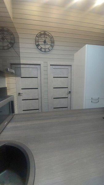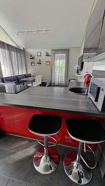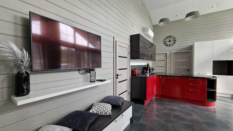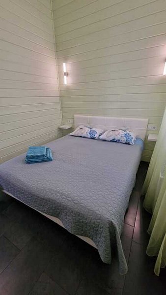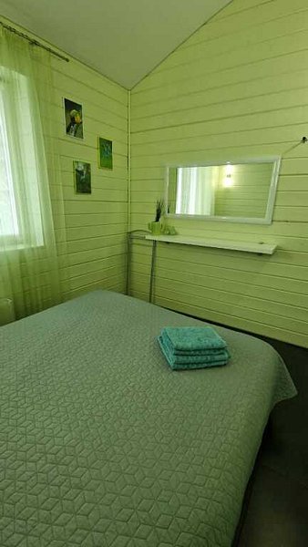 В доме две спальни, кухня-гостиная. Кухня оборудована необходимой посудой и бытовой техникой.