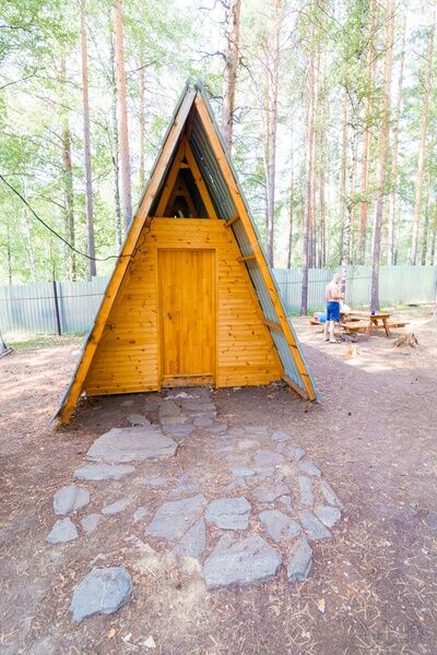 Небольшой уютный домик для двоих, оборудованный одной двуспальной или двумя односпальными кроватями, электрической плитой и чайником. Есть электричество, в прохладную погоду возможно подключение отопления. При заселении выдаются спальные принадлежности: чистое постельное белье, подушки и одеяла. В домик заведено электричество, в прохладную погоду возможно подключение отопления. Рядом находится мангальная зона.