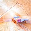 На мансардном этаже расположена двуспальная кровать. Все спальные принадлежности (постельное бельё, подушки и одеяла) включены в стоимость и выдаются при заселении.