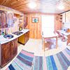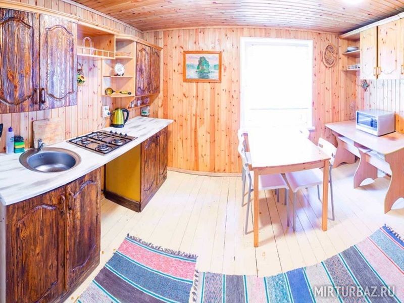 В доме: 2 двухуровневые кровати, электрическая плита, чайник, холодильник, набор посуды. Все спальные принадлежности (постельное бельё, подушки и одеяла) включены в стоимость и выдаются при заселении.