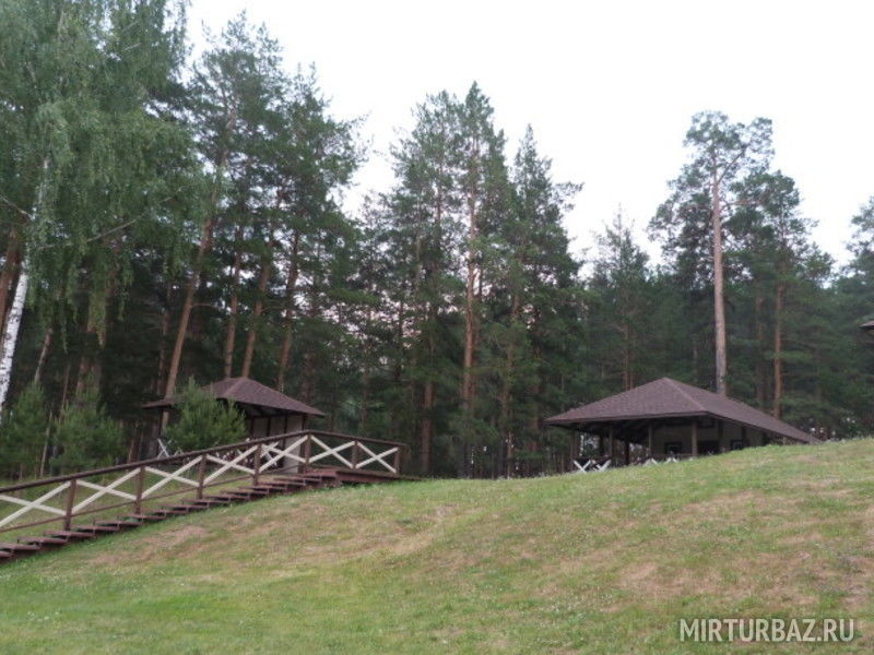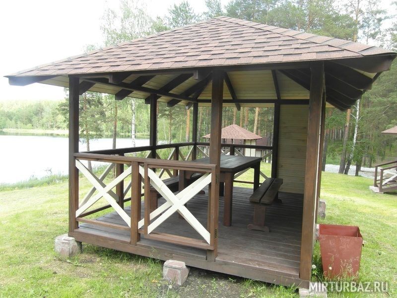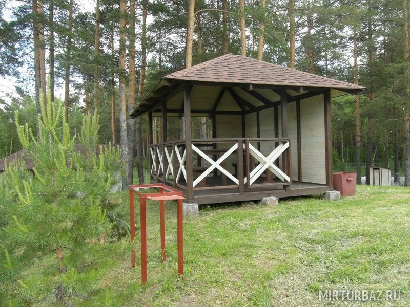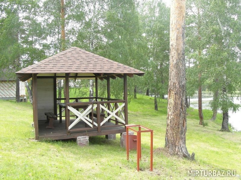 На территории базы имеются открытые беседки для летнего отдыха. Внутри находится стол с двумя лавками, возле беседки — оборудованная мангальная зона.