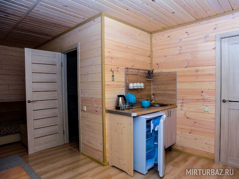 В доме есть санузел с холодной/горячей водой, мини-кухня с мойкой и холодильником.