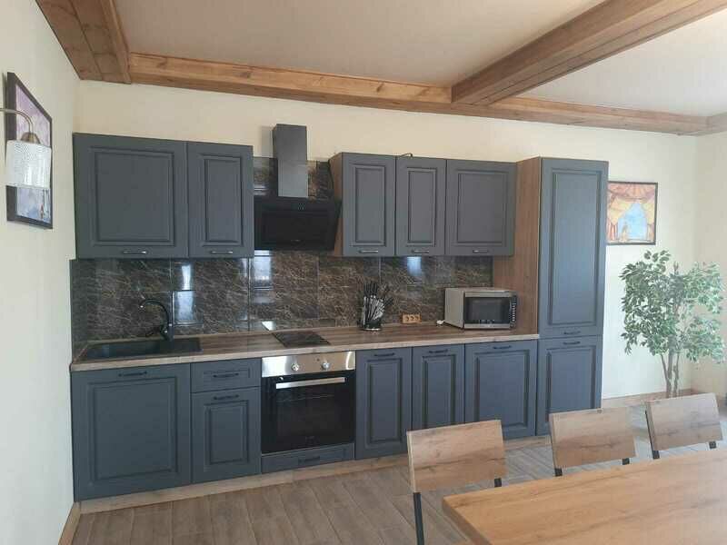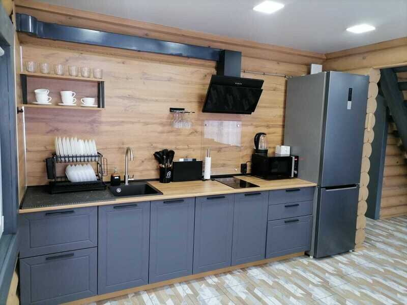 Для вашего комфорта в доме есть: варочная поверхность, холодильник, микроволновая печь, телевизор, аудио система, белоснежные полотенца , халаты, постельное белье, так же на первом этаже располагается баня , с душем.