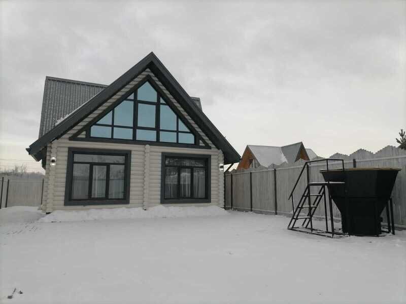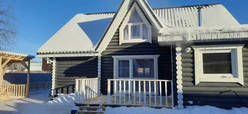 Новый двухэтажный дом с баней из бревна площадью 100 кв.м. с собственной территорией в 6 сот. находится в 1 км от горнолыжного курорта .