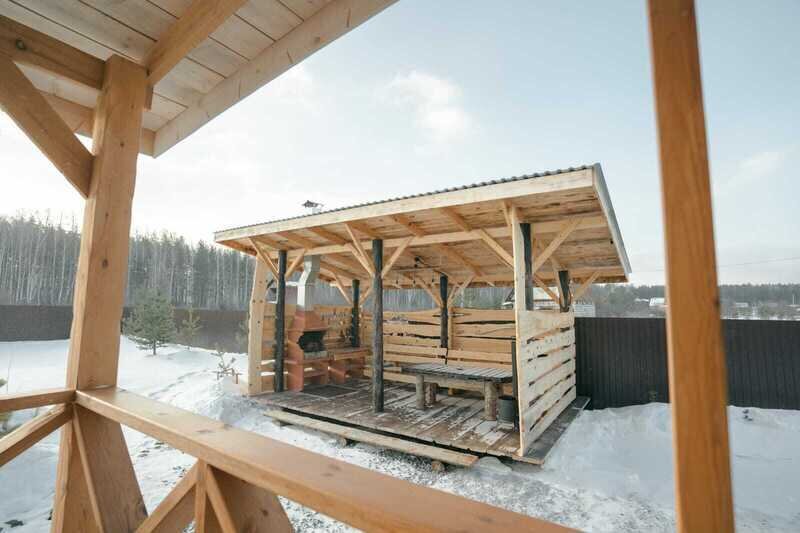 Около каждого дома беседки с мангальными зонами.