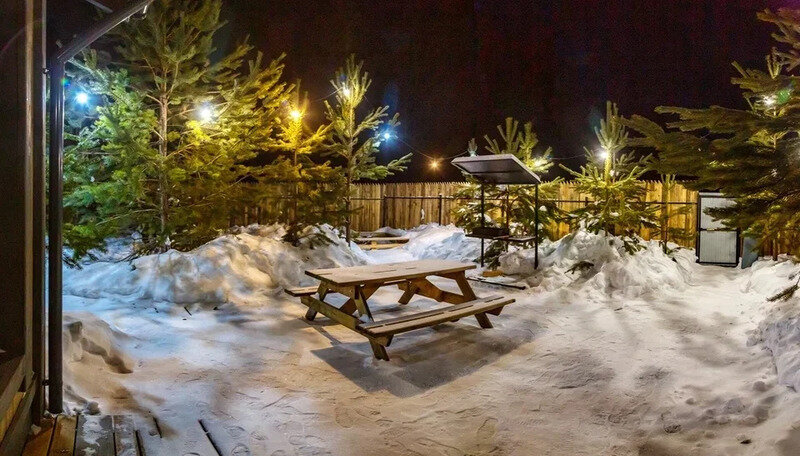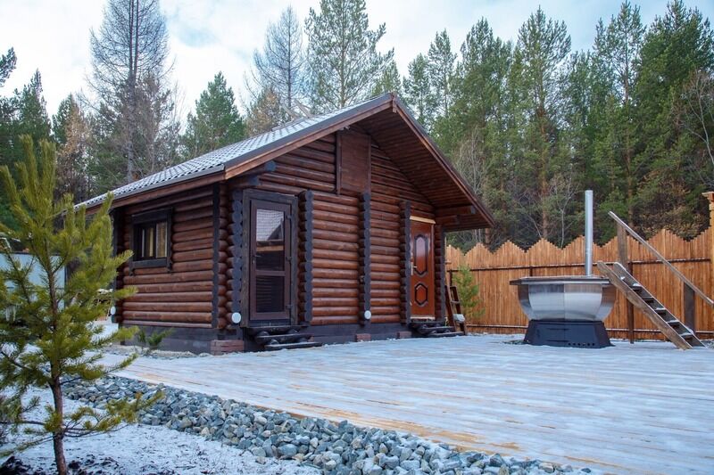 Территория каждого дома и зона отдыха огорожена забором и выстелена деревянным настилом, что обеспечивает чистоту и уединение. Белоснежные полотенца, халаты, постельное белье, средства гигиены, посуда, веники, решетка, уголь, настольные игры — все предусмотрено для вашего комфорта. А также в домах предусмотрены бани и сауны, горячий чан-купель.